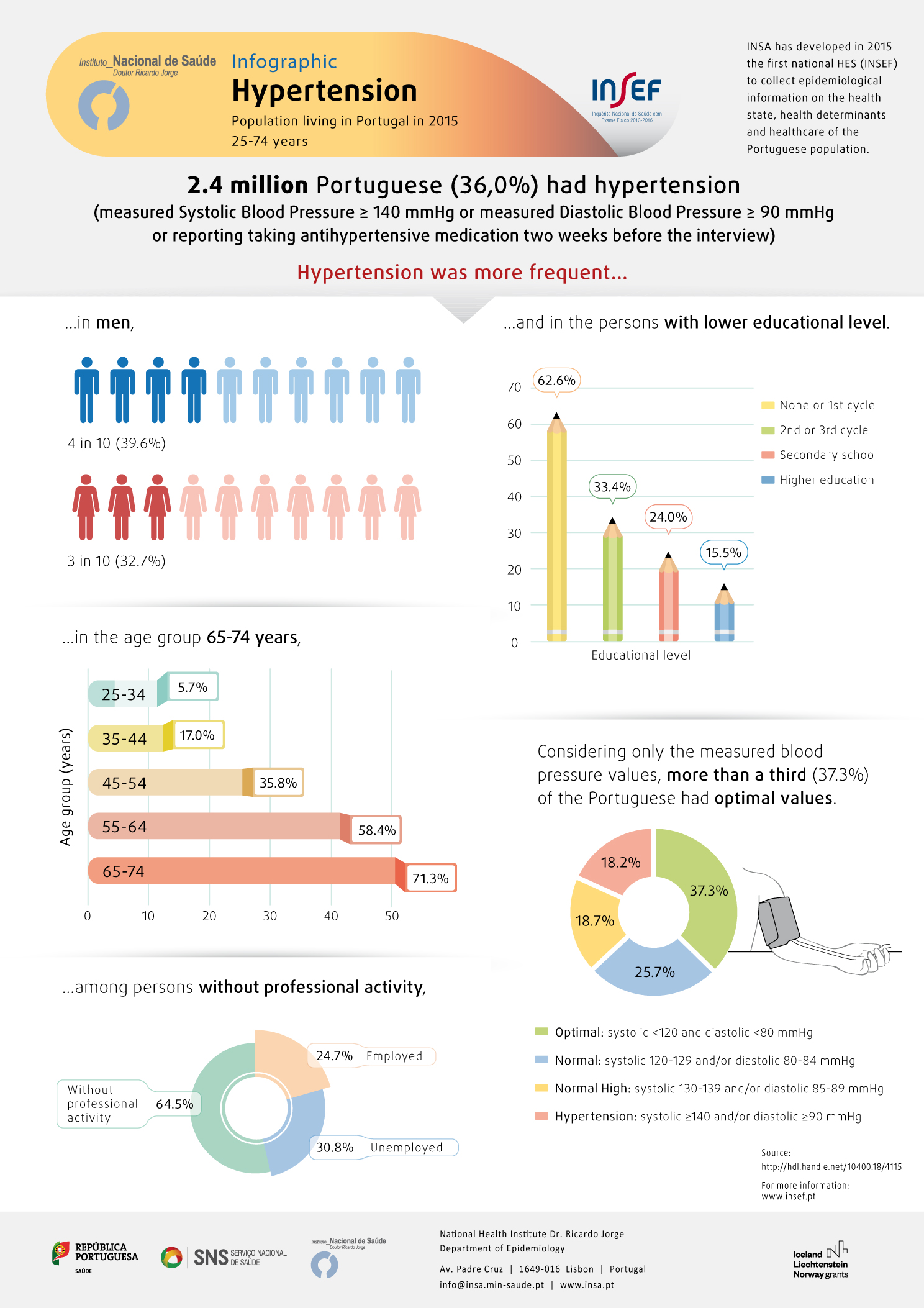 Hipertensão Estados de Saúde e de Doença Infográficos INSEF Inquérito Nacional de Saúde com Exame Físico 2015 Saúde Pública Portugal Hypertension Portuguese Population Portuguese Health Examination Survey