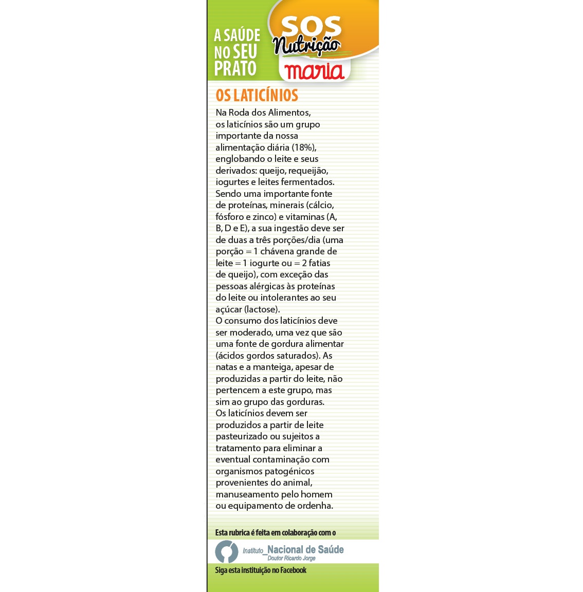Informação sobre os laticínios.